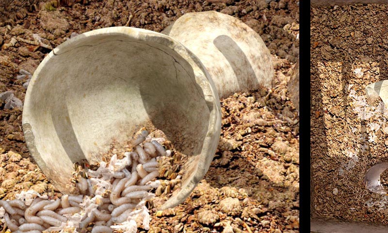 Der Nachlass | Installation | Patricia Bolf-Charmi, 2013 Erde, Brot, Metal, Maden